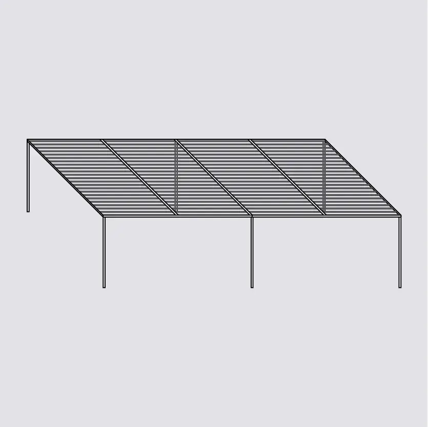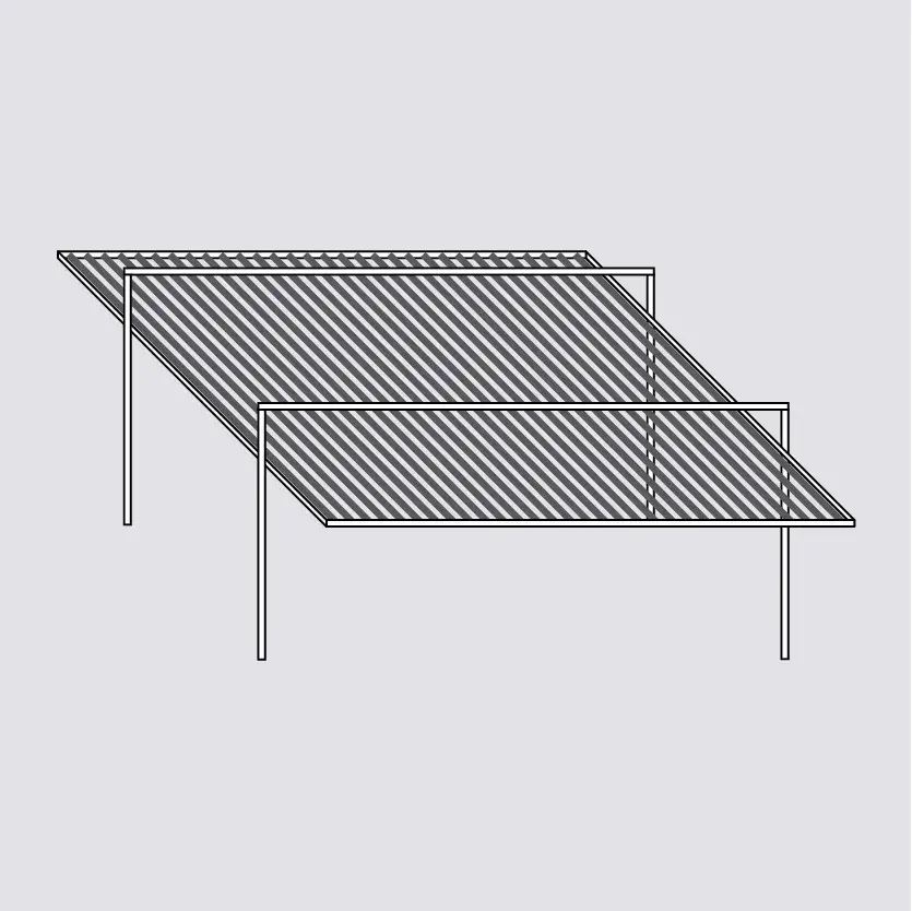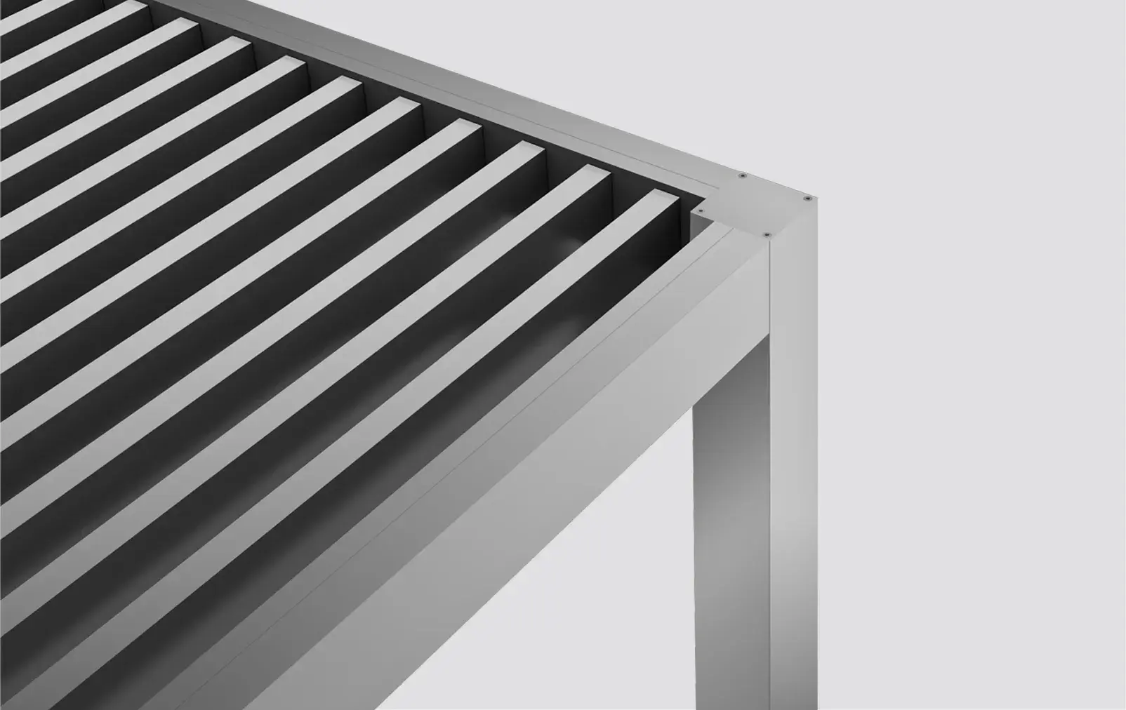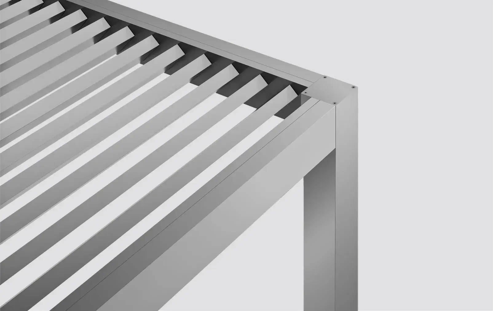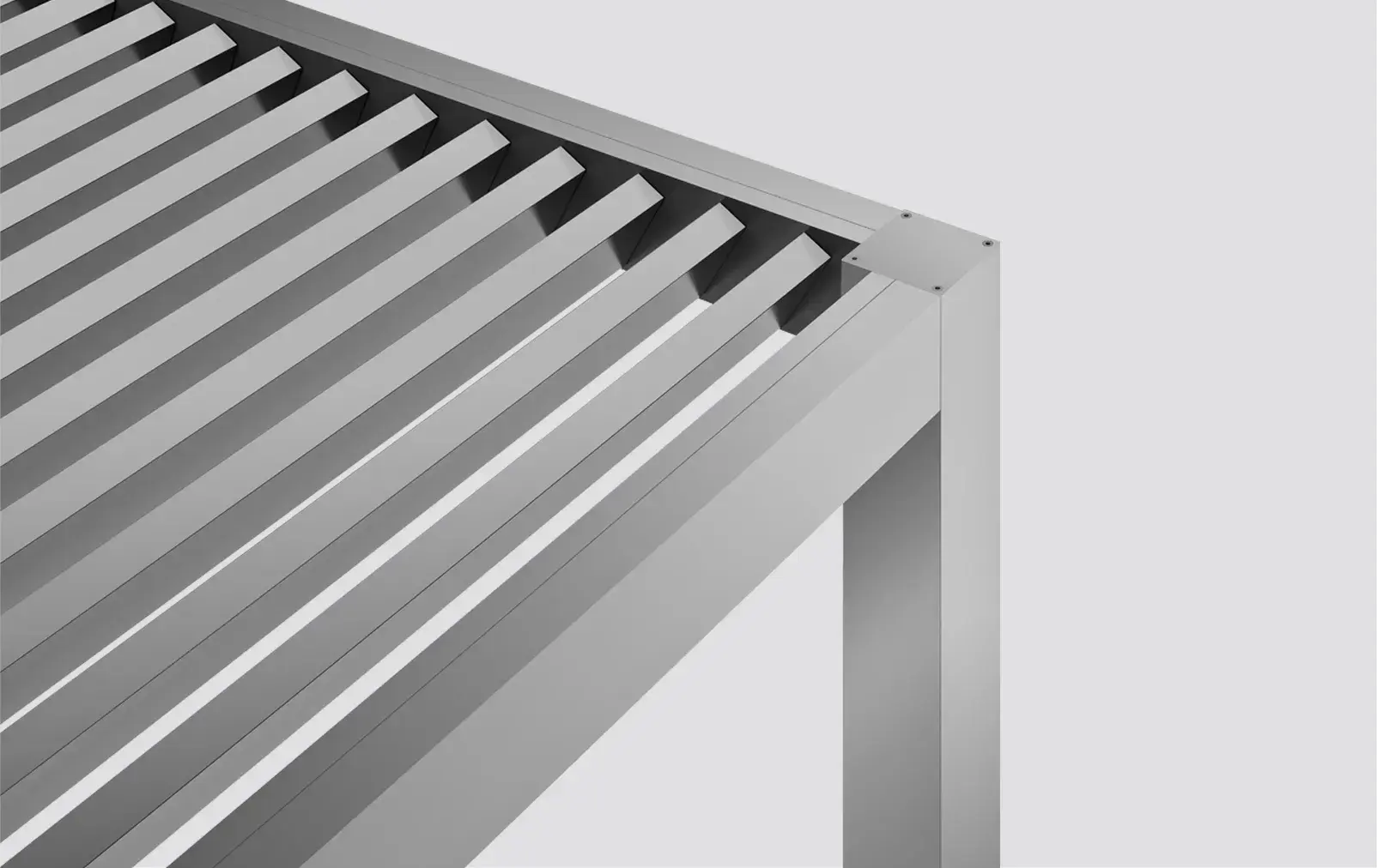 Wall-mounted, corner or multiple construction typologies meet any architectural specification. Fixed louvers of 0°, 30° or 45°, in vertical or horizontal arrangement, ensure the full customisation of your pergola to fit the architectural concept and light principles.