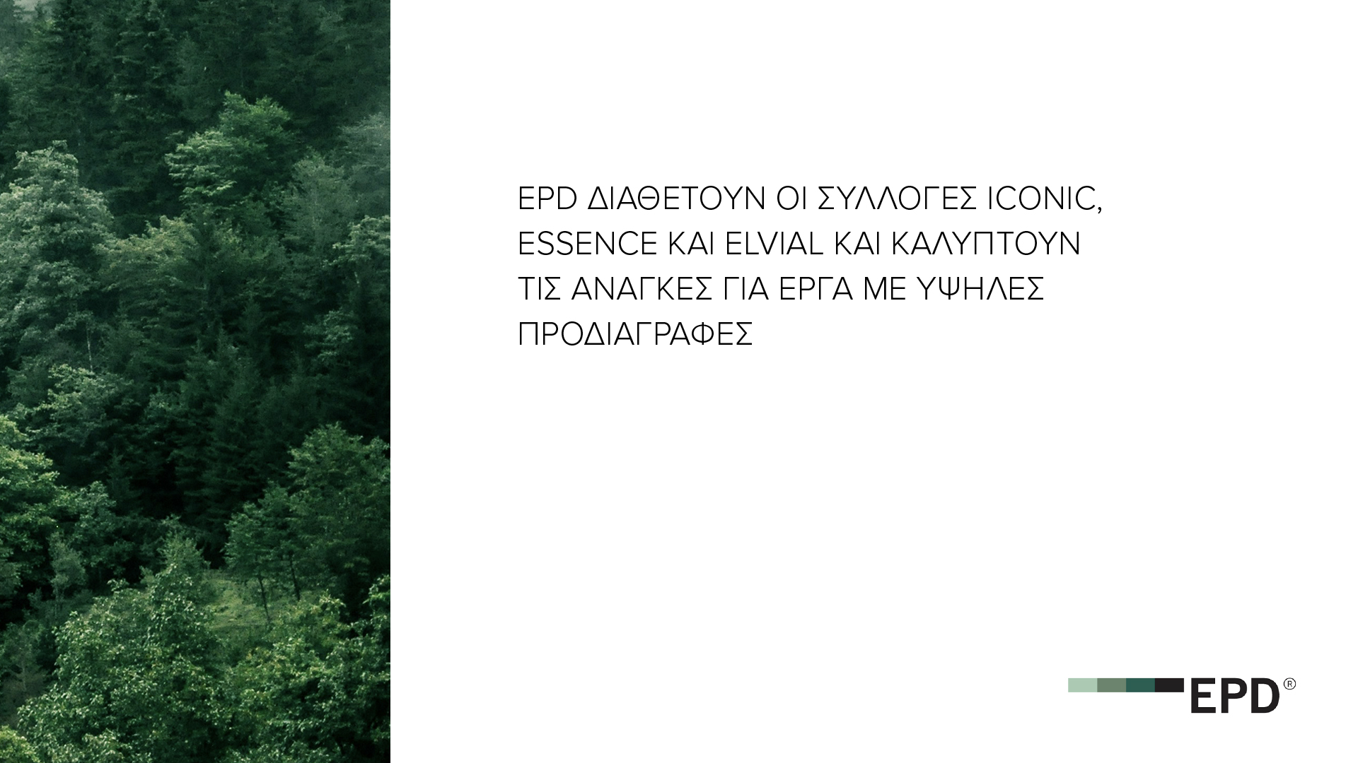 Συγκεκριμένα, τα αρχιτεκτονικά συστήματα της ELVIAL που διαθέτουν πλέον Περιβαλλοντική Δήλωση Προϊόντος (EPD) είναι οι οικογένειες των αρχιτεκτονικών συστημάτων ICONIC, ESSENCE και ELVIAL και καλύπτουν ακόμα και τις υψηλότερες απαιτήσεις για ανοιγόμενα, συρόμενα συστήματα και φυσούνα, καθώς επίσης και λύσεις για πόρτες και υαλοπετάσματα.