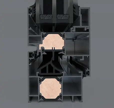 The innovation, ELVIAL I² Technology, is applied on all system’s profiles. This way, an extra insulation zone is created in the middle chamber of the profile, boosting the system’s energy performance [Uf] by up to 38%.