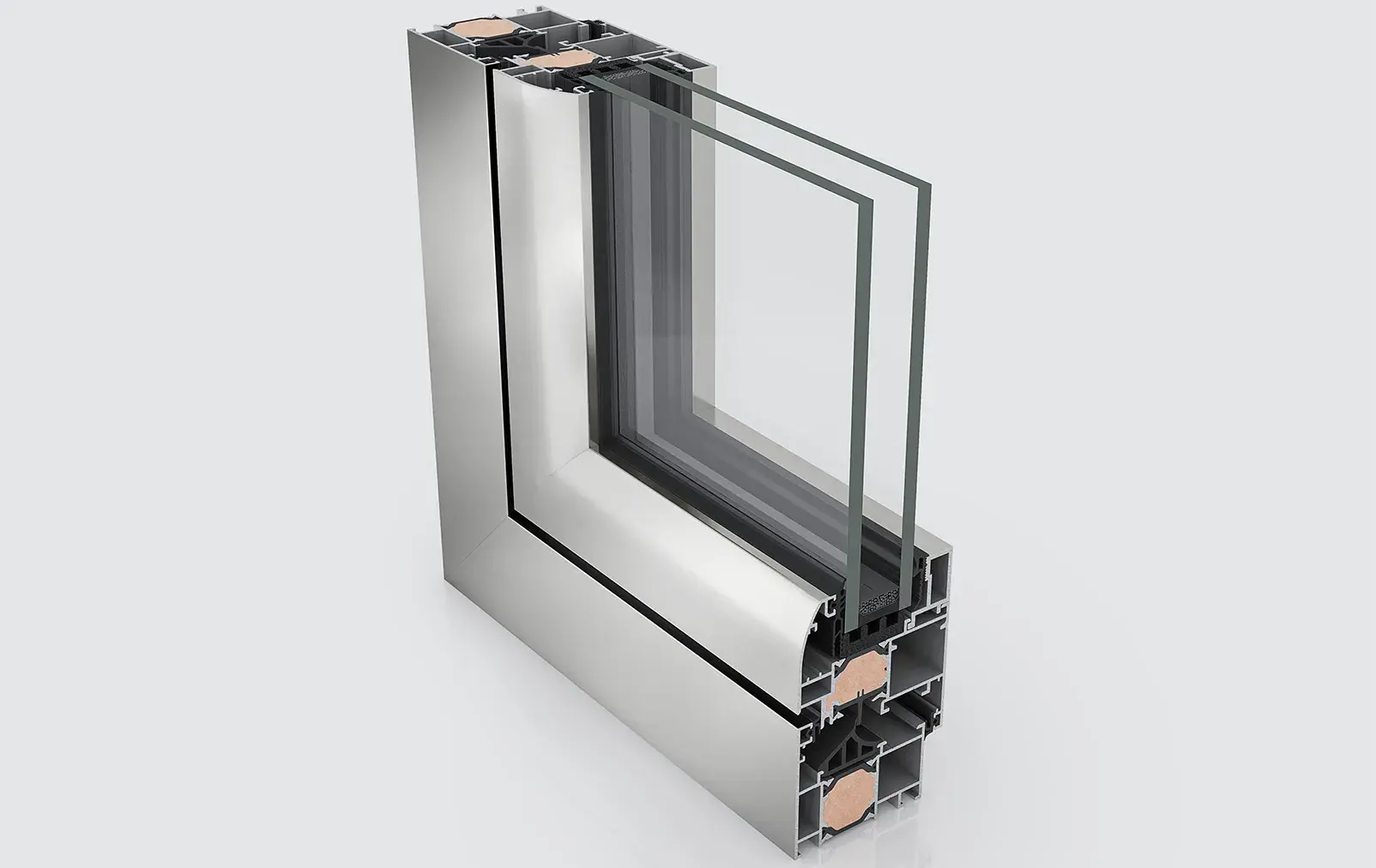 Glazing gaskets with fins minimize the heat transfer under the glazing zone. -