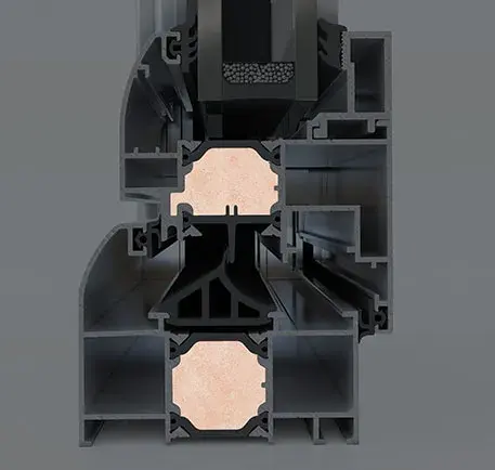 The innovation, ELVIAL I² Technology, is applied on all system’s profiles. This way, an extra insulation zone is created in the middle chamber of the profile, boosting the system’s energy performance [Uf] by up to 38%.