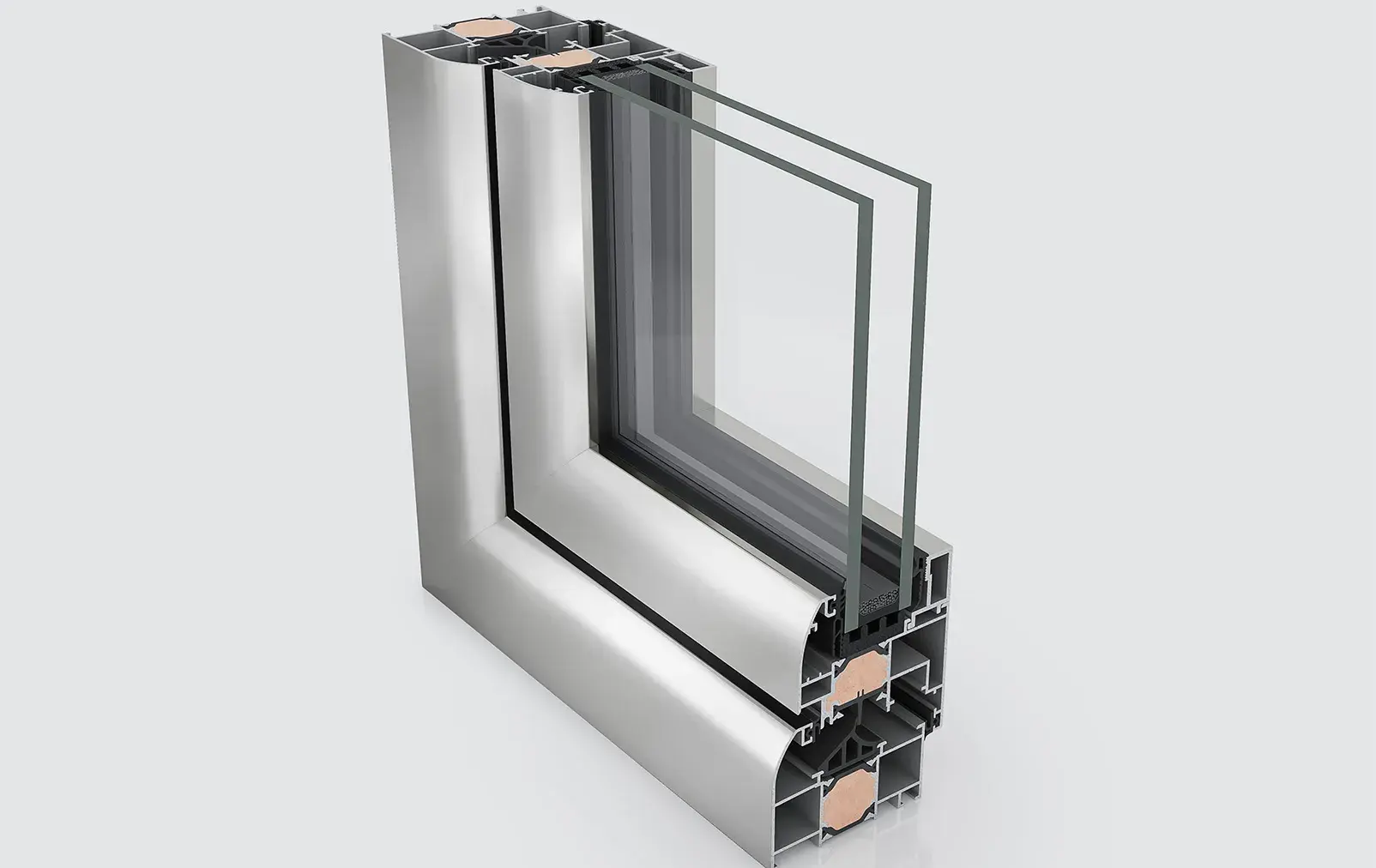 Glazing gaskets with fins minimize the heat transfer under the glazing zone. -